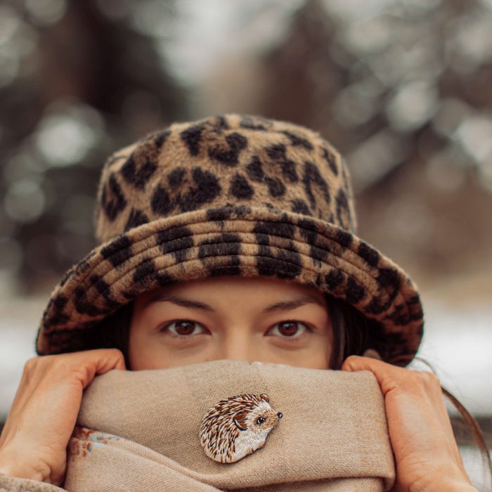 Брошка с бродерия „Спяща лисичка“