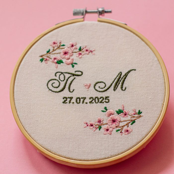 Бродирана сватбена картина с инициали по избор